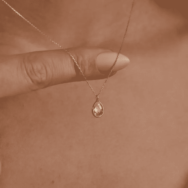 14K Gold Teardrop Diamond Necklace – Solitaire Pendant Necklace – Minimalist Solid Gold Jewelry – April Birthstone Necklace Gift for Her
