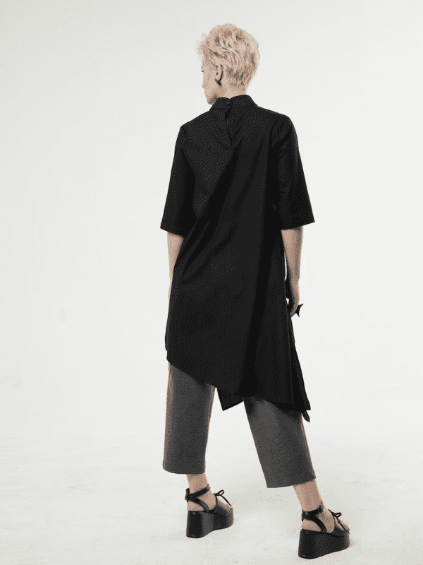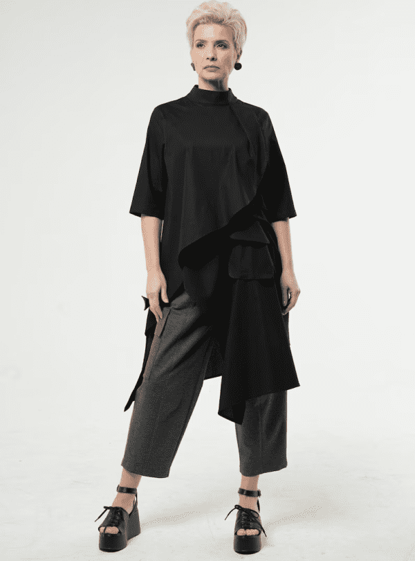 Be the first to review “Asymmetric Tunic Shirt / Black Tunic Top With Draping / Long Cotton Blouse”