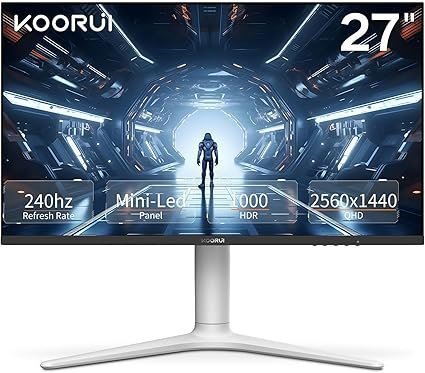 KOORUI Monitor, 27” 240Hz Gaming Monitor, Mini-LED Panel- QHD (2560 x 1440) Computer Screen, 1ms, HDR 1000 Display, 100% sRGB, Height Adjustable, HDMI/DisplayPort, White/Grey, GN10