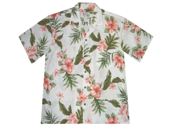 Men’s Cotton Hawaiian Aloha Shirt – Coral Hibiscus Print, Made in Hawaii