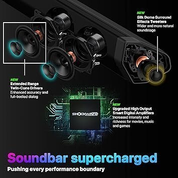 Nakamichi Shockwafe Ultra 9.2.4 Channel Dolby Atmos/DTS:X Soundbar with Dual 10″ Subwoofers (Wireless), 4 Rear Surround Effects Speakers, eARC and SSE Max Technology (Flagship)