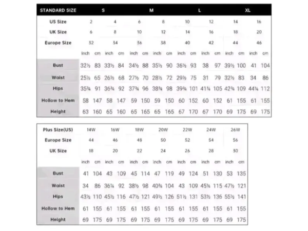 Before buying, check our size chart as sizes may differ from your country’s. If unsure, send your chest, waist, and hip measurements, and we’ll help you choose the right size!