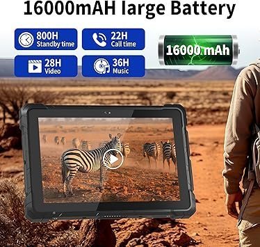 - 【16000 mAh Super Battery】OuuOee’s 16000 mAh/3.7V graphene-enhanced battery provides 10+hours. The battery hot-swap function lets you replace cells without shutting down. Say goodbye to interruptions and hello to uninterrupted productivity, all thanks to the superior battery capacity of our rugged tablet.